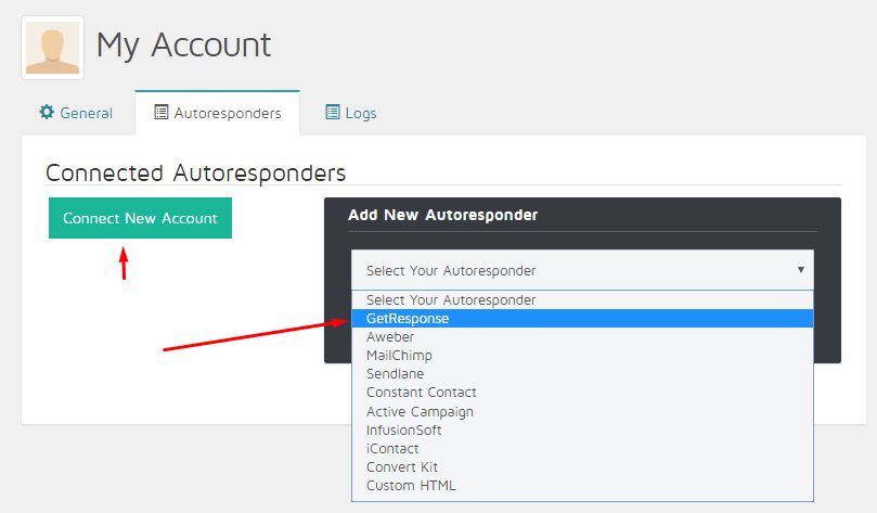 - Select GetResponse from the drop-down menu for Autoresponder System.